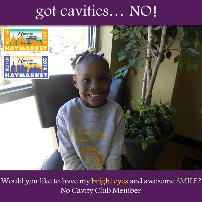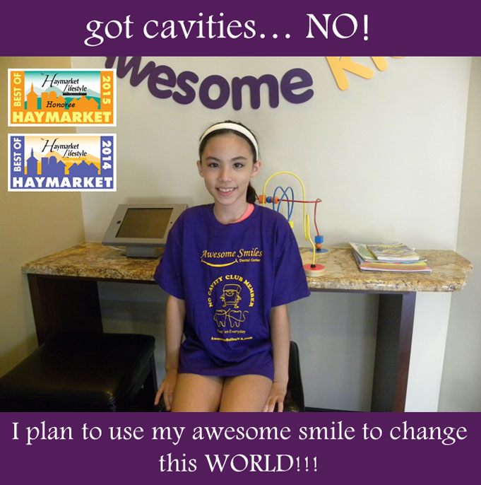 Awesome Smiles is the TOP-RATED family dental office in Haymarket, VA. Dr. Tontra Lowe has been named one of America’s Top Dentists by the Consumers Research Council of America since 2011. Also, in 2016, 2017, 2018, 2019, 2020, 2021, and 2022, Awesome Smiles Dental Center was VOTED the BEST DENTAL OFFICE in Haymarket and Gainesville, VA, by Readers’ Choice. Dr. Lowe, Dr. Emoke Basa, and Dr. Malik have the pleasure of introducing our signature Awesome Smiles No Cavity Club. This exclusive, members-only club is just for our awesome kids up to age 11 who genuinely showcase the best in oral hygiene! Free t-shirts, gift certificates for food, and a drawing for a movie party for up to 10 friends are all amazing prizes you could win. Stay cavity-free and WIN! Great job, club members. Keep up the excellent work.